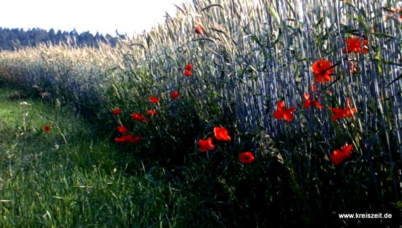 Liebe Empfängerin, lieber Empfänger des KreisZeit-Newsletter, das wird hier heute ein bißchen länger… Sommer Wie schnell wieder Sommer geworden ist! Und entgegen vieler Unkenrufe schenkt er hier bei uns seine ganze Fülle. Reif und golden steht das Korn auf den Feldern, die hellblau leuchtenden Wegwarten strahlen mit dem Himmel um die Wette, voller leuchtender Blumen